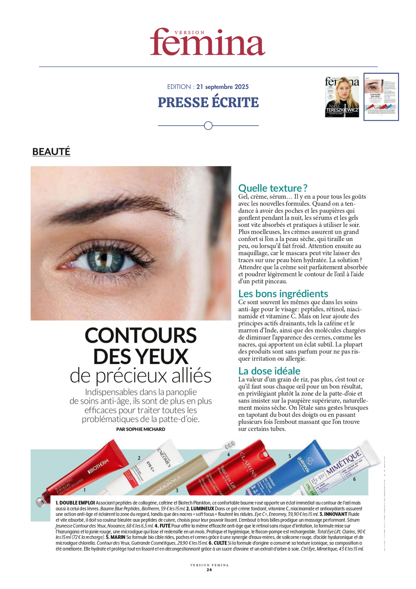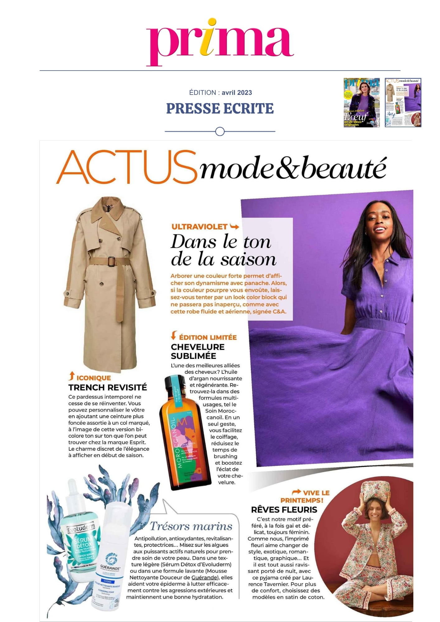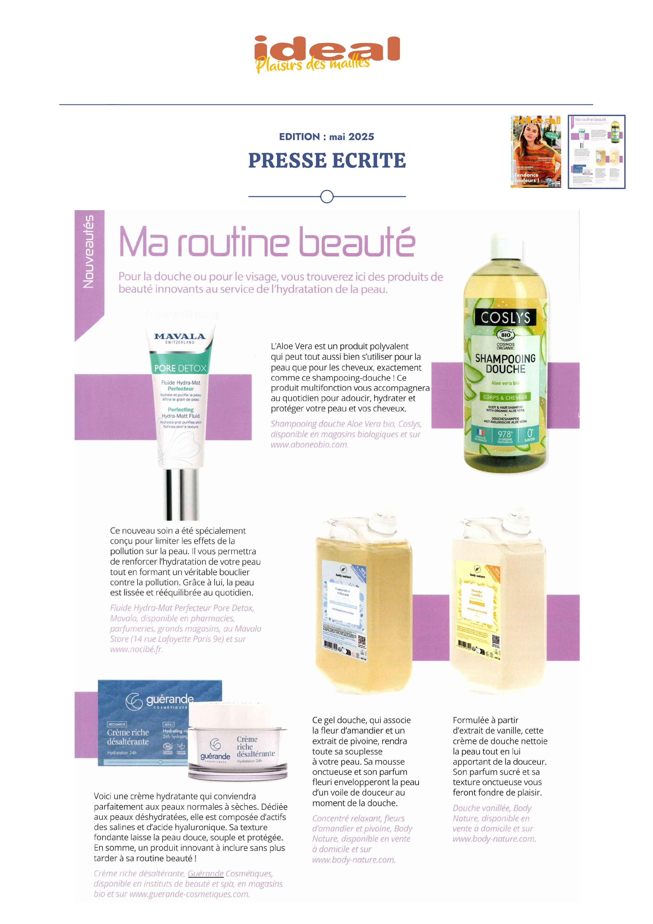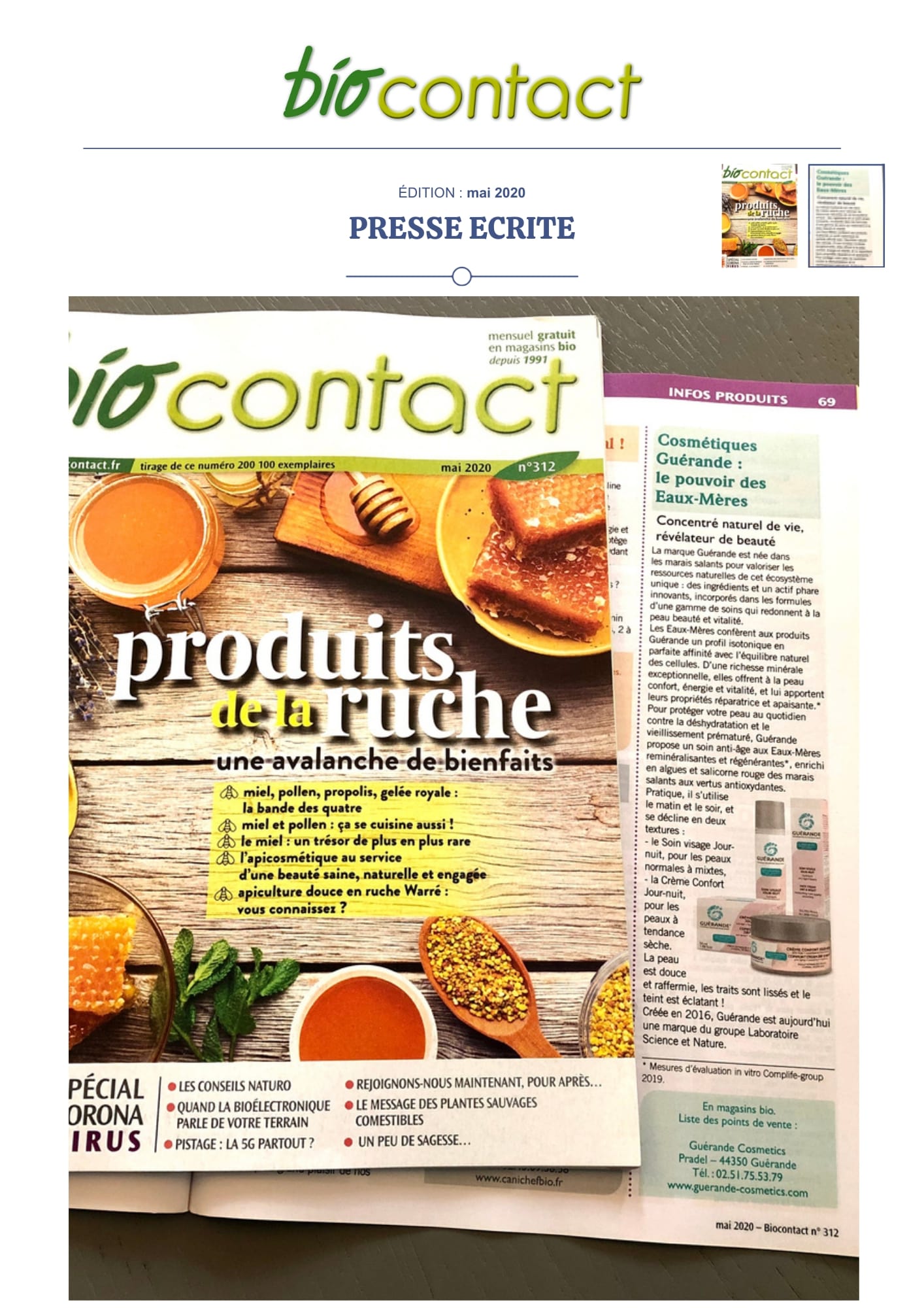 Notre univers, inspiré par les salines de Guérande et nourri par la science et le soin thalassiques, suscite curiosité et enthousiasme. Presse, radio, TV... retrouvez-ici une sélection de notre revue de presse. Chaque parution témoigne de l’intérêt croissant pour notre approche engagée, respectueuse de la peau et de l’environnement. À travers ces articles, c’est toute l’âme de notre marque qui se révèle, entre naturalité, innovation et authenticité.